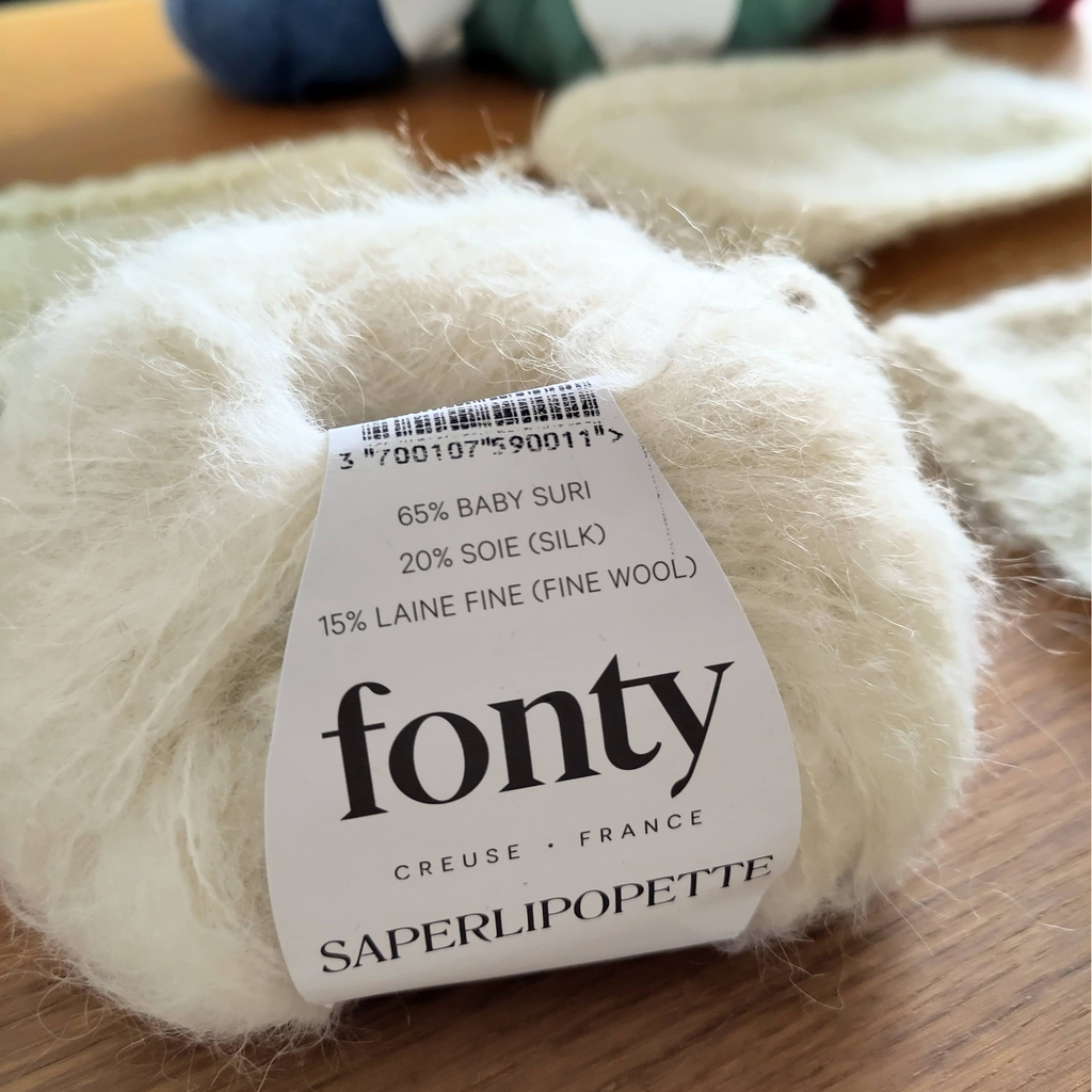 Das Garn SAPERLIPOPETTE von Fonty ist eine besonders leichte, weiche und flauschige Wolle. Für alle, die Mohair nicht gut vertragen, ist sie die perfekte Alternative – weich, edel und ganz ohne Kratzen. Sie besteht aus 65 % Baby-Suri-Alpaka, 15 % feiner Merinowolle und 20 % Seide – eine Kombination, die sich unglaublich angenehm anfühlt. Für mich ist sie eindeutig die kuscheligste Wolle in meinem gesamten Sortiment.