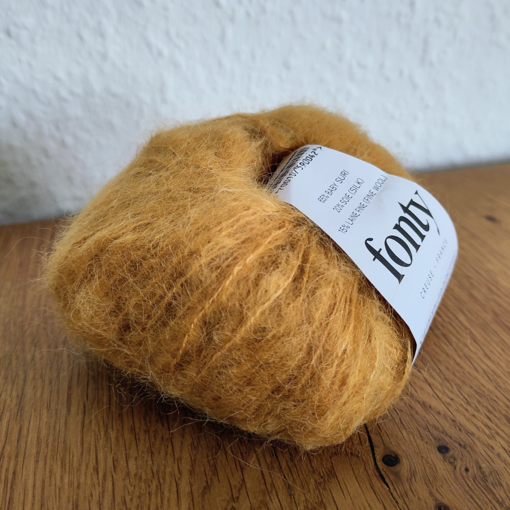 Das Garn SAPERLIPOPETTE von Fonty ist eine besonders leichte, weiche und flauschige Wolle. Für alle, die Mohair nicht gut vertragen, ist sie die perfekte Alternative – weich, edel und ganz ohne Kratzen. Sie besteht aus 65 % Baby-Suri-Alpaka, 15 % feiner Merinowolle und 20 % Seide – eine Kombination, die sich unglaublich angenehm anfühlt. Für mich ist sie eindeutig die kuscheligste Wolle in meinem gesamten Sortiment.