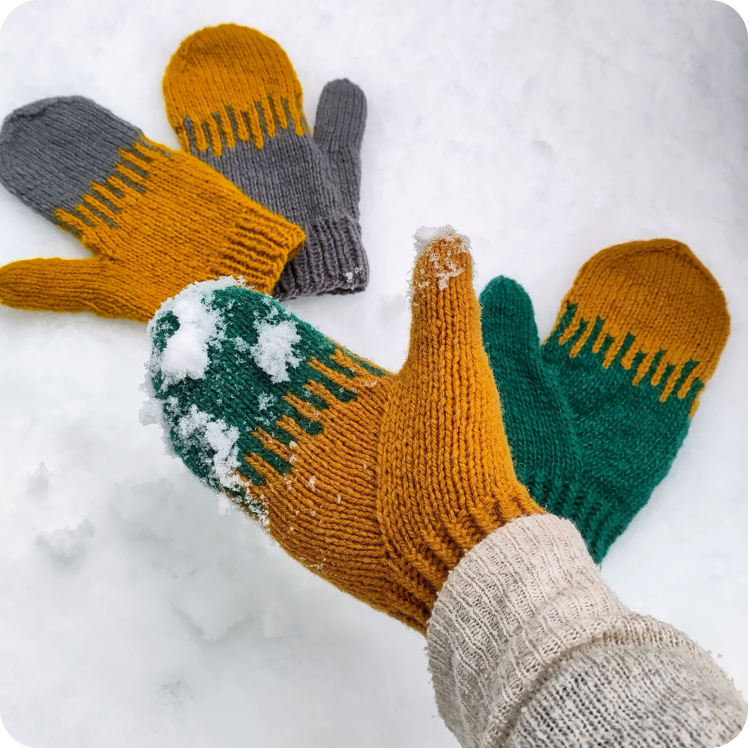 Letzten Winter habe ich die Handstulpen „Winter Mitts“ entworfen und mehrfach gestrickt. Mir war ein schlichtes, leicht zugängliches Design wichtig, das trotzdem schöne Details und etwas anspruchsvollere Techniken enthält.